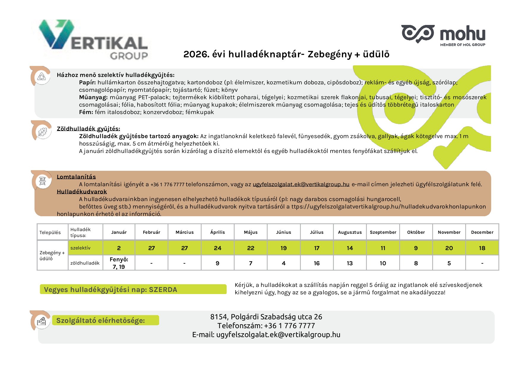A hulladéknaptár megtekintése / letöltése PDF dokumentumként: MEGNYITÁS