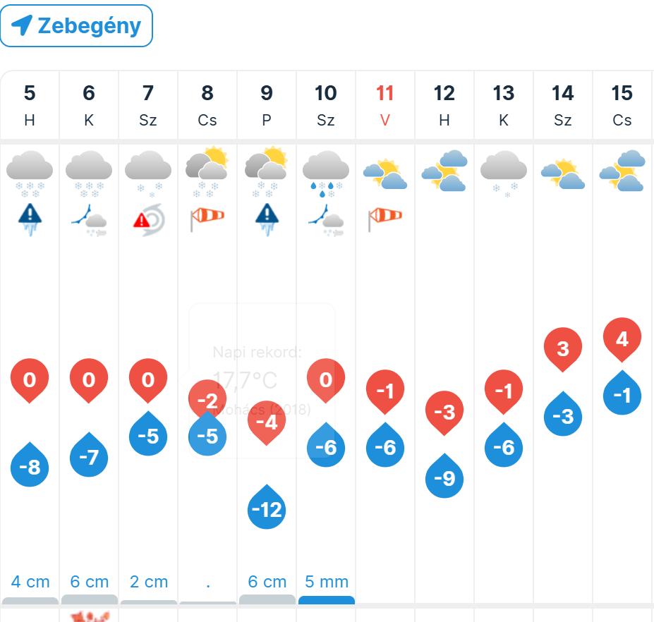 Az időjárási előrejelzések szerint a következő napokban tartós havazásra és jelentős lehűlésre kell számítanunk Zebegényben is. A lehulló hó a hideg miatt várhatóan megmarad, az ónos eső és az éjszakai fagyok következtében pedig síkossá válhatnak a járdák és közlekedési felületek.